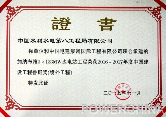 由工程局承建的加納布維水電站工程榮獲2016-2017年度中國(guó)建設(shè)工程魯班獎(jiǎng)(境外工程)。