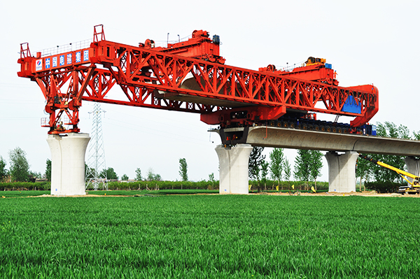 SPJ900A/32箱梁架橋機(jī)由石家莊鐵道學(xué)院設(shè)計(jì), 江蘇華遠(yuǎn)奧瑪重工有限公司制造,用于客運(yùn)專線鐵路雙線整孔箱梁架設(shè)的架設(shè)。為步履式、尾部喂梁,起重小車吊梁拖梁取梁,跨一孔簡支架梁??梢约茉O(shè)32m、24m、20m雙線整孔箱梁,適應(yīng)架設(shè)最小曲線半徑R5500m,適應(yīng)架設(shè)最大縱坡20‰,額定起重量900t。