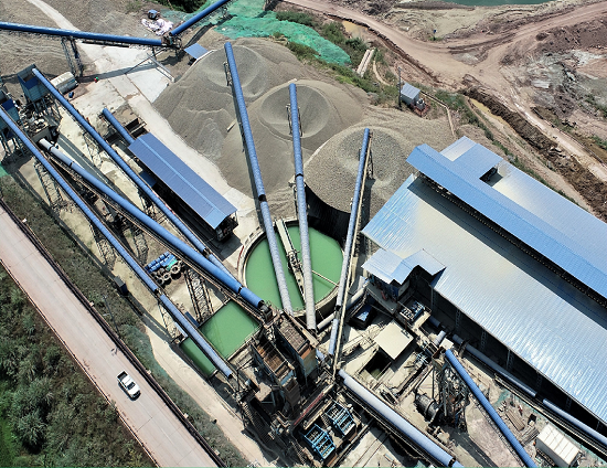 重慶利澤砂石加工系統(tǒng)位于嘉陵江梯級渠化利澤航運樞紐工程右岸壩軸線上游0.2km處,場地為岸坡山體,高程▽210m~▽240m區(qū)間,場地中部為山脊,兩側(cè)為山坳;主要供應(yīng)本標(biāo)除7#~12#閘壩頂預(yù)制梁及啟閉機排架等混凝土外,共需約60.5萬m3混凝土骨料以及約0.5萬m3圍堰砂礫石墊層料。系統(tǒng)占地面積約2.38萬m2,主要由受料車間、半成品料倉、中碎車間、細(xì)碎車間、篩分車間、棒磨車間、成品料倉、供配電系統(tǒng)、帶式輸送機輸送系統(tǒng)和給排水系統(tǒng)組成,總裝機功率2381.0kw。砂石料源為天然砂礫料,選擇唐家河壩砂礫料場的天然砂礫料作為本工程砂石加工料源。系統(tǒng)設(shè)計處理能力為500t/h,設(shè)計生產(chǎn)能力:大石(40mm~80mm)130.18t/h,中石(20mm~40mm)98.06t/h,小石(5mm~20mm)69.74t/h,砂(<5mm)134t/h,生產(chǎn)能力滿足混凝土高峰月澆筑強度7萬m3混凝土所需骨料的生產(chǎn)要求。