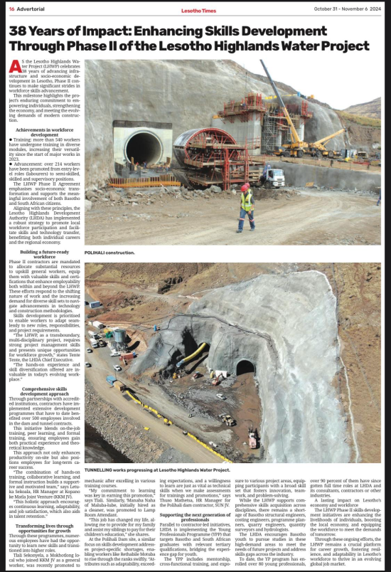 《萊索托時(shí)報(bào)(Lesotho Times)》:萊索托高地水利二期項(xiàng)目助力當(dāng)?shù)丶寄芘嘤?xùn) | |||||