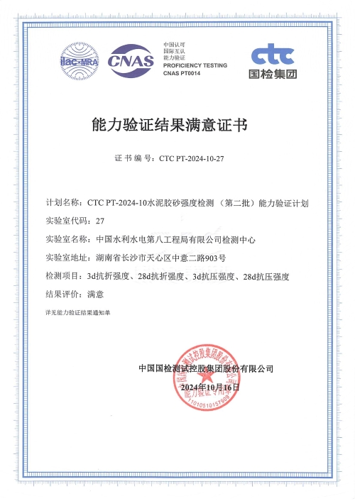 近日,工程局檢測中心收到由中國國檢測試控股集團(tuán)股份有限公司頒發(fā)的“CTC PT-2024-7水泥凝結(jié)時間檢測(第二批)”及“CTC PT-2024-10水泥膠砂強(qiáng)度檢測(第二批)”兩項(xiàng)能力驗(yàn)證證書,顯示檢測中心在參加國檢集團(tuán)組織的2項(xiàng)能力驗(yàn)證結(jié)果為滿意。 水泥作為現(xiàn)代建筑中不可或缺的材料之一,其物理性能直接關(guān)系到建筑物的質(zhì)量和安全。因此,水泥物理性能的準(zhǔn)確檢測顯得尤為重要。此次能力驗(yàn)證活動涵蓋了水泥的多個關(guān)鍵性能指標(biāo),包括強(qiáng)度、凝結(jié)時間等。檢測中心順利通過驗(yàn)證,展現(xiàn)了高水平的檢測能力和嚴(yán)謹(jǐn)?shù)脑囼?yàn)態(tài)度。 中國國檢控股集團(tuán)股份有限公司作為國內(nèi)領(lǐng)先的檢測機(jī)構(gòu),其舉辦的能力驗(yàn)證活動具有極高的權(quán)威性和公信力。此次取得滿意結(jié)果,是對檢測中心檢測技術(shù)和能力的肯定,也是對檢測中心持續(xù)追求卓越、不斷改進(jìn)質(zhì)量的鼓勵。檢測中心將繼續(xù)保持嚴(yán)謹(jǐn)?shù)目茖W(xué)態(tài)度和高效的工作作風(fēng),繼續(xù)積極參與各類能力驗(yàn)證活動,與國內(nèi)外同行交流學(xué)習(xí),共同推動檢測行業(yè)的進(jìn)步和發(fā)展,為建筑行業(yè)健康發(fā)展貢獻(xiàn)力量。