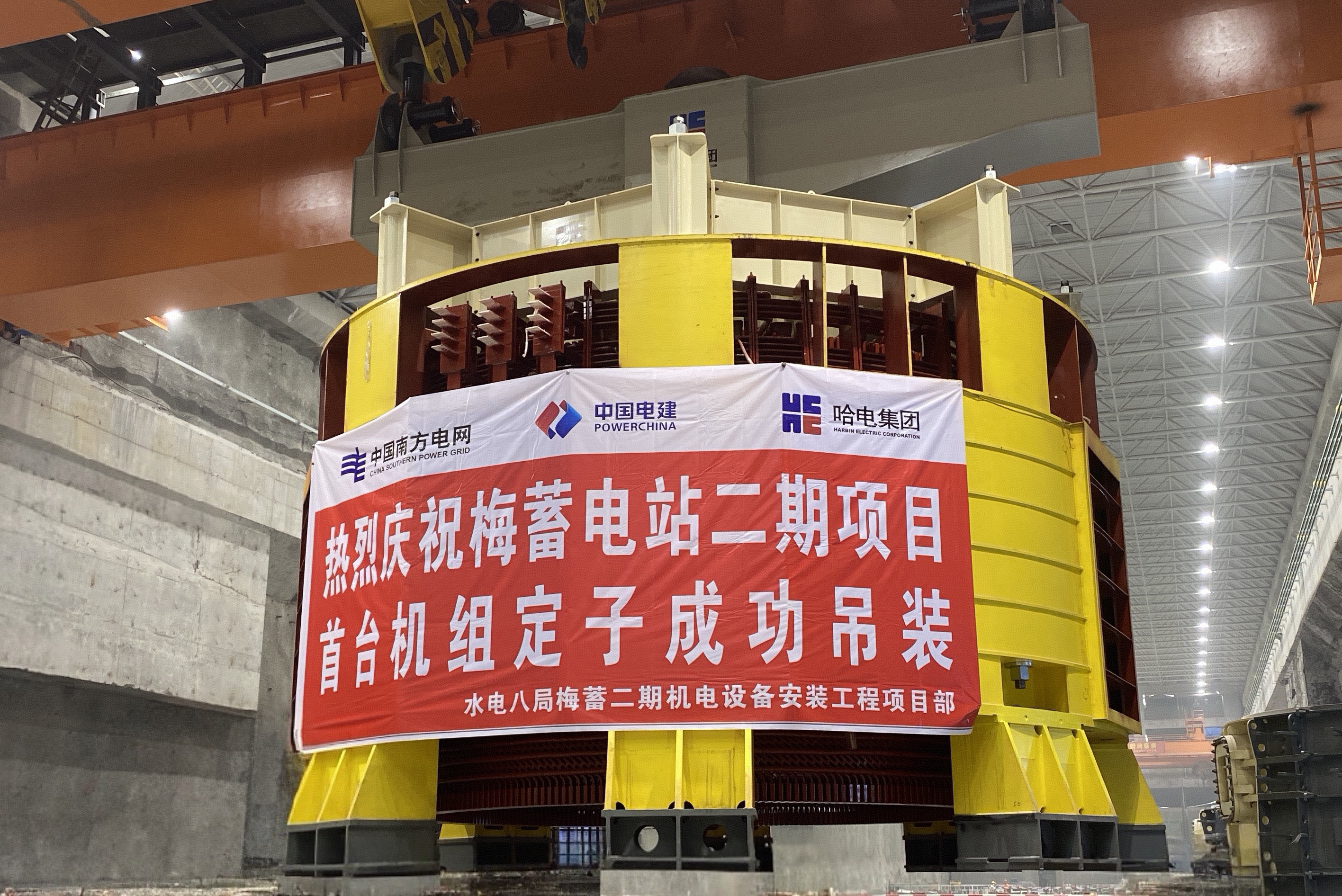 梅蓄電站二期項(xiàng)目首臺機(jī)組定子吊裝完成 | |||||