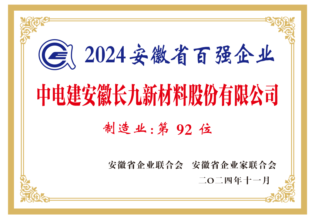 長(zhǎng)九公司上榜安徽制造業(yè)“百?gòu)?qiáng)” | |||||