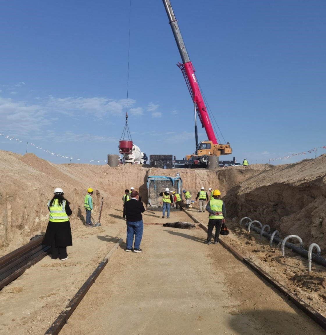 受項(xiàng)目施工區(qū)域特殊地質(zhì)環(huán)境的影響,項(xiàng)目施工團(tuán)隊(duì)在項(xiàng)目箱涵施工的前期籌備工作中面臨科威特分公司以往項(xiàng)目中所從未面臨的降水技術(shù)難題。為了加快履約進(jìn)度、嚴(yán)格把控項(xiàng)目施工成本,項(xiàng)目施工團(tuán)隊(duì)科學(xué)的進(jìn)行項(xiàng)目施工生產(chǎn)計(jì)劃部署,保質(zhì)保量保效的完成了前期籌備工作,為既定施工進(jìn)度奠定堅(jiān)實(shí)基礎(chǔ)。 科威特T1282基礎(chǔ)設(shè)施項(xiàng)目位于科威特薩巴赫-阿哈邁德城東南部,距離科威特市中心約65公里,與目前在建的科威特T-1210別墅項(xiàng)目?jī)H一路相隔。項(xiàng)目主要施工內(nèi)容為建造南薩巴赫·艾哈邁德城新城(N4、N6、N8地塊)三個(gè)區(qū)域的基礎(chǔ)設(shè)施管線、瀝青道路等,為后續(xù)三個(gè)區(qū)域的6189個(gè)住宅單元服務(wù)。項(xiàng)目建成后,不僅將極大地促進(jìn)當(dāng)?shù)匦鲁菂^(qū)的快速發(fā)展,提升居民生活品質(zhì),更將對(duì)科威特經(jīng)濟(jì)持續(xù)增長(zhǎng)和社會(huì)穩(wěn)定和諧起到重要推動(dòng)作用。 下一步,項(xiàng)目部將始終秉持科學(xué)嚴(yán)謹(jǐn)?shù)膽B(tài)度,充分發(fā)揮專業(yè)技術(shù)優(yōu)勢(shì),強(qiáng)化施工過程中的動(dòng)態(tài)監(jiān)控與風(fēng)險(xiǎn)管理,確保各環(huán)節(jié)穩(wěn)步推進(jìn)。同時(shí),項(xiàng)目部將積極推動(dòng)屬地化發(fā)展,為區(qū)域經(jīng)濟(jì)發(fā)展和能源的可持續(xù)供應(yīng)貢獻(xiàn)力量。