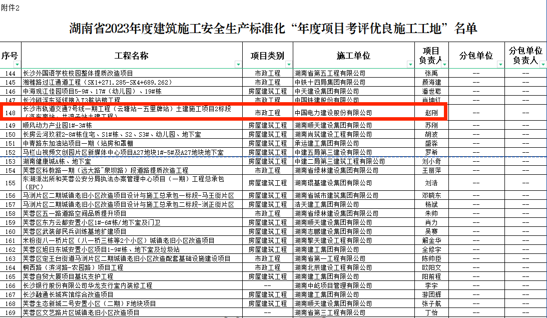 長(zhǎng)沙地鐵7號(hào)線獲湖南省2023年度“項(xiàng)目考評(píng)優(yōu)良施工工地” | ||||||